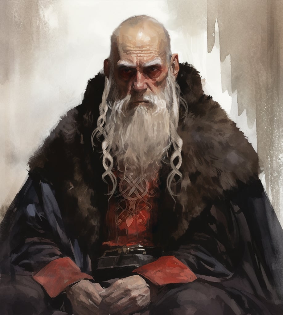 High Chieftain of the barbarian clans at Karvosti Description: A tall, bearded man in a long bearskin cloak. More neutral arbiter than absolute ruler — his power derives from what the clan chiefs are willing to grant him. He presides over disputes, judges blood feuds, and occasionally serves as military leader. He has held the position for at least seventeen years.