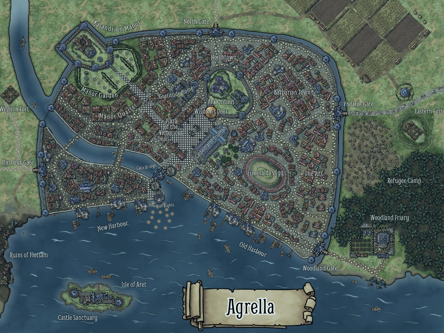 A city on the shores of Lake Ebel, governed by the young Grand Duchess Esméralda Kohinoor (Korinthia's half-sister, age seventeen). Agrella Agrella Western Ambrian settlement. Agricultural heartland and home to Ordo Magica's High Chapterhouse. Ordo Magica The wizard order. Studies, regulates, and licenses magic within Ambria. Internal politics are deadly. Yndaros Capital of Ambria. ~100,000 people. Built atop the ruins of ancient Lindaros on the shores of Lake Doudram. Seldonio GrandMaster of Ordo Magica. The order's highest authority on magical matters.